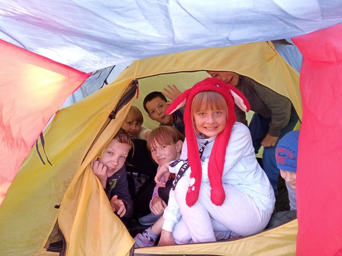 научил ребят правильно собирать палатку и надевать спасательный жилет. Дети