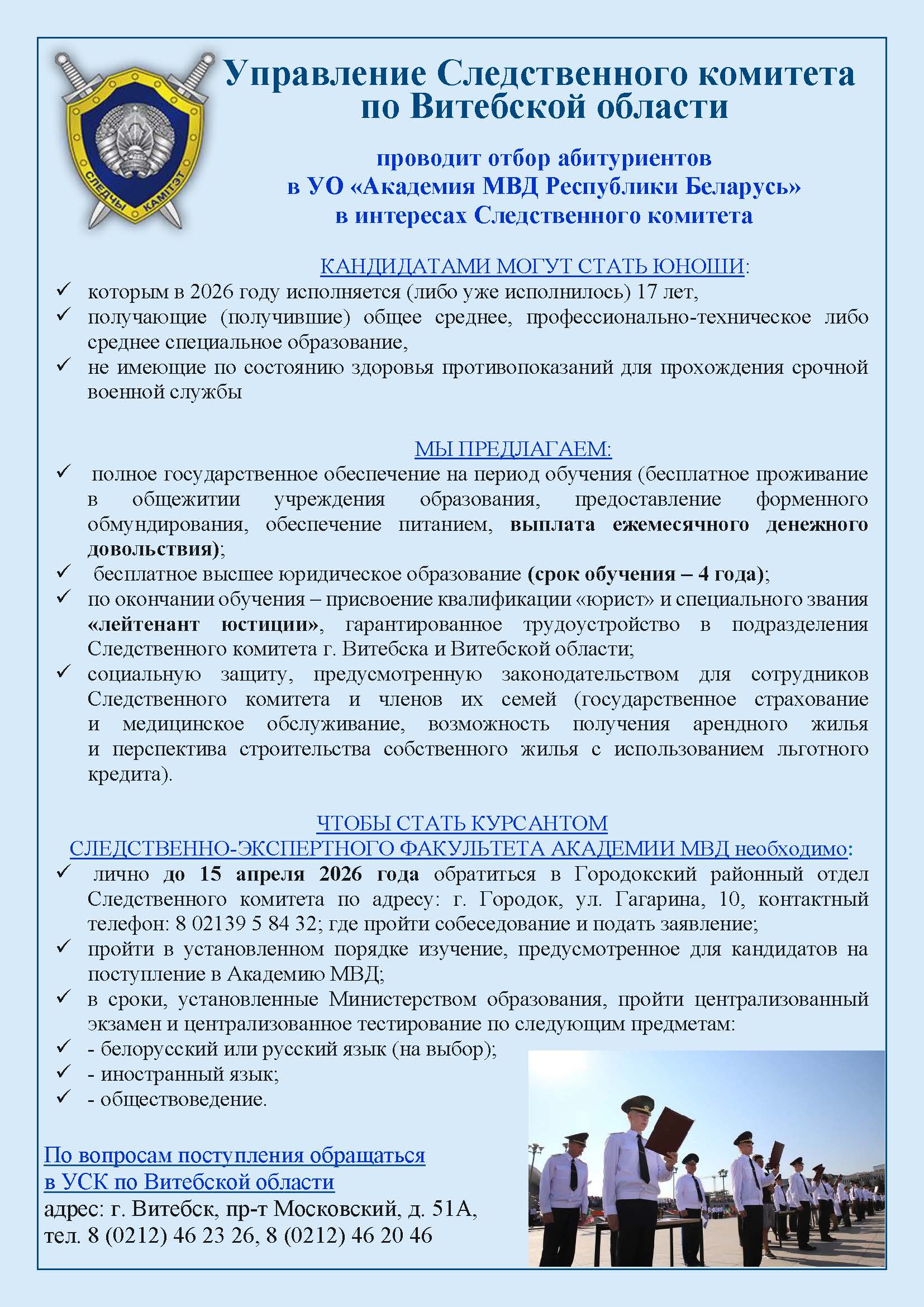 Информация для абитуриентов о Могилевском институте МВД Республики Беларусь
