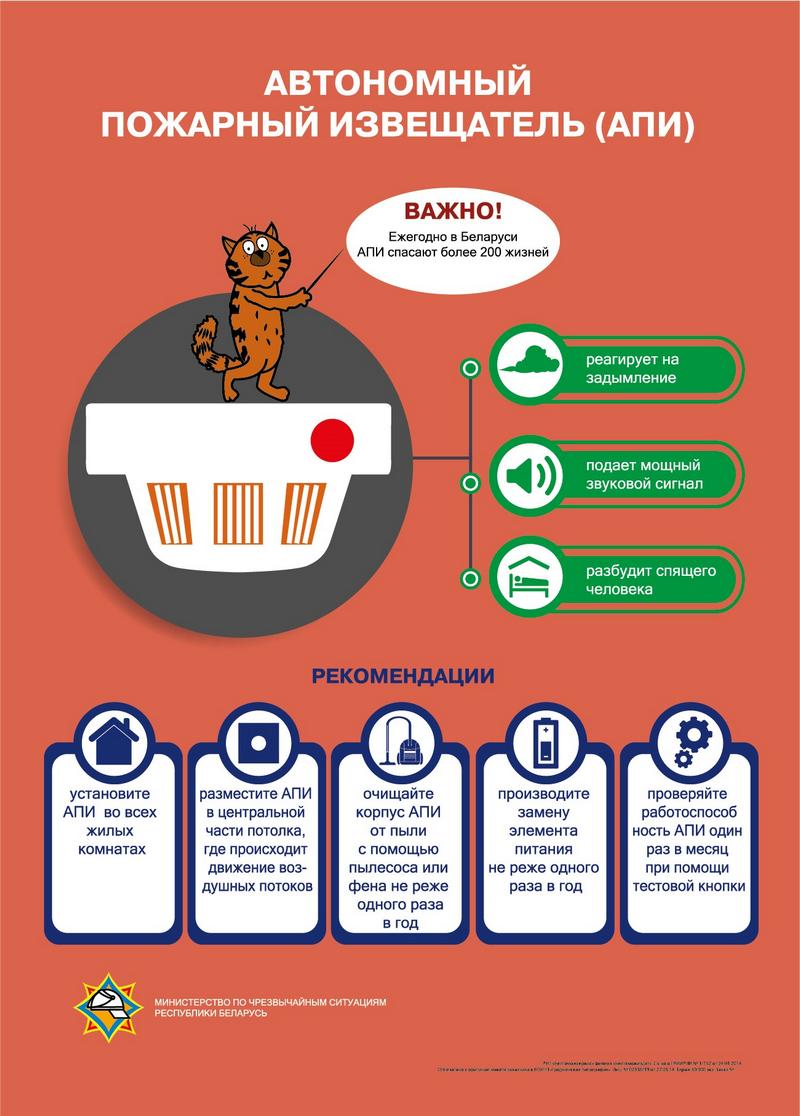 Помните: с точки зрения пожарной безопасности, установленные в жилых помещениях АПИ, должны содержаться в работоспособном и исправном состоянии. Берегите себя и своих близких! В случае возникновения чрезвычайной ситуации звоните по номеру «101» или «112».