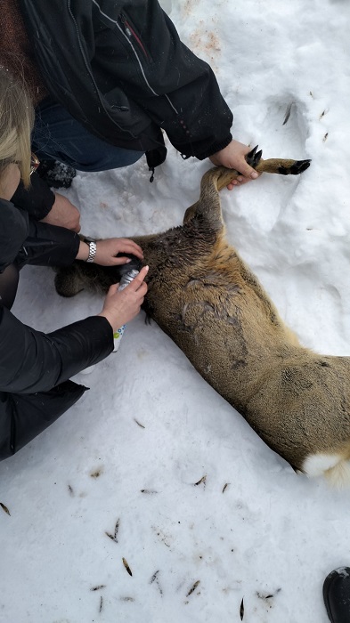 оказанию помощи диким животным косуля была отловлена, оказана ветеринарная