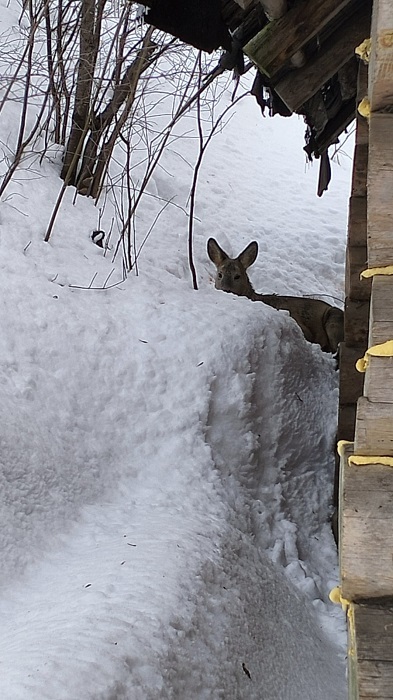животное – косуля, попавшая в бедственное положение. Косуля была напугана, на